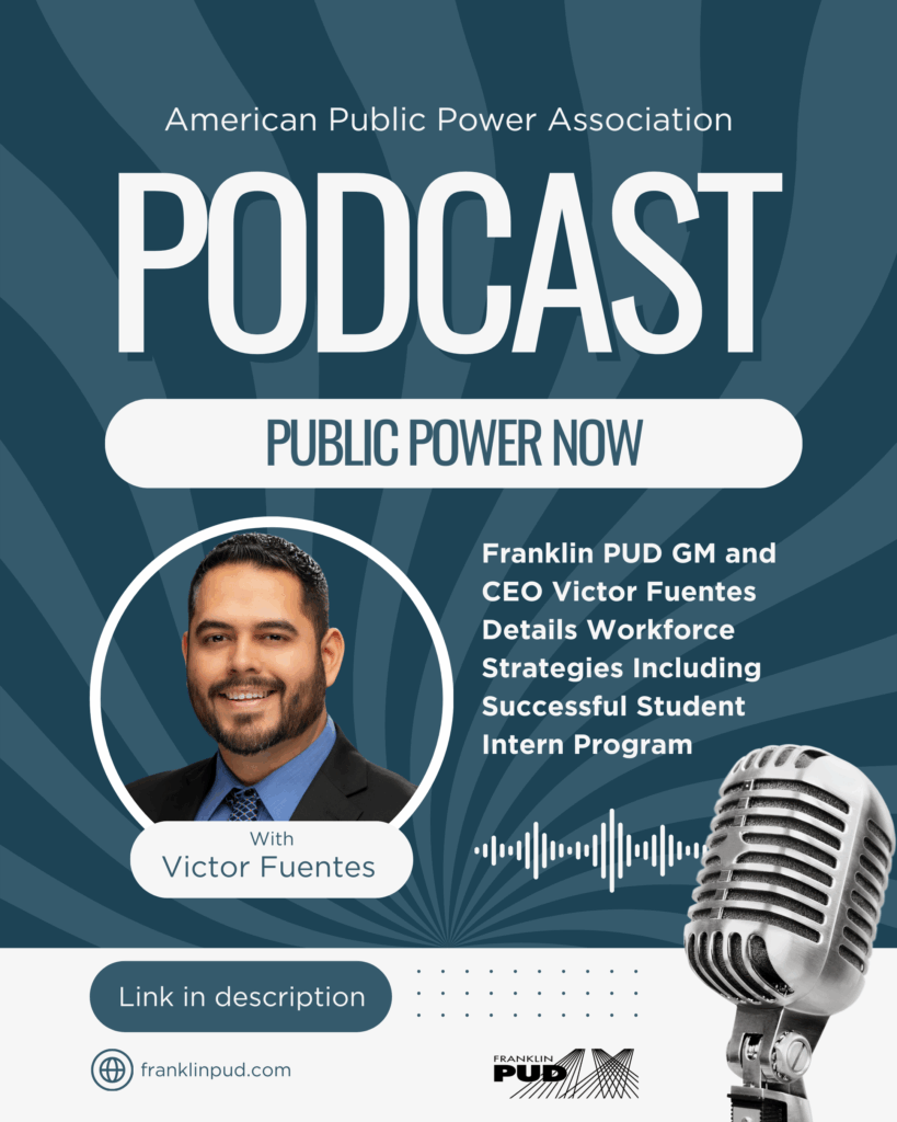 We’re proud of our CEO and General Manager, Victor Fuentes, who recently spoke on the Public Power Now podcast to share Franklin PUD’s commitment to workforce development and clean energy. From launching a successful student intern program to planning our path to 100% clean electricity by 2045, Victor highlighted how we’re investing in the future—both for our community and our grid.