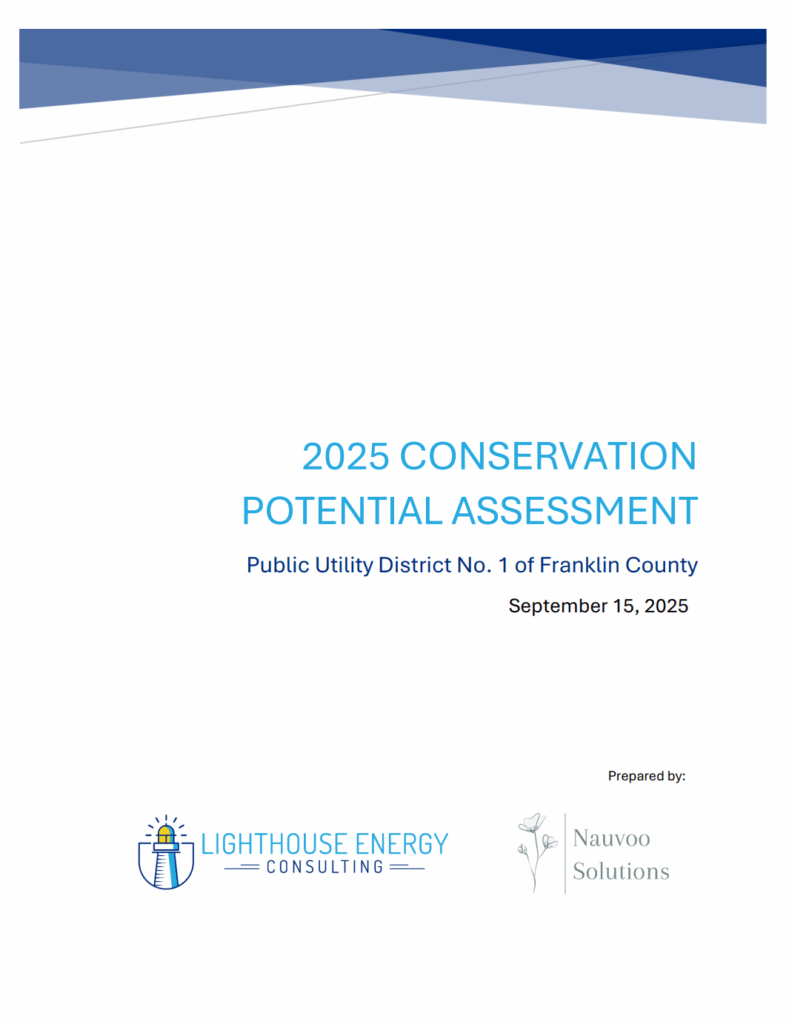 This report presents the Conservation Potential Assessment (CPA) conducted by Lighthouse Energy Consulting and Nauvoo Solutions for Franklin PUD. The CPA was undertaken to estimate the cost-effective energy savings potential for the period of 2026 to 2045. This assessment is a requirement because Franklin PUD is subject to the Washington Energy Independence Act (WA EIA), which mandates utilities with over 25,000 customers to identify and acquire all cost-effective energy efficiency resources. The report details the results for the full 20-year period, with specific focus on the 2- and 10-year targets under the WA EIA, as well as the 4-year interim compliance period for the state’s Clean Energy Transformation Act (CETA).